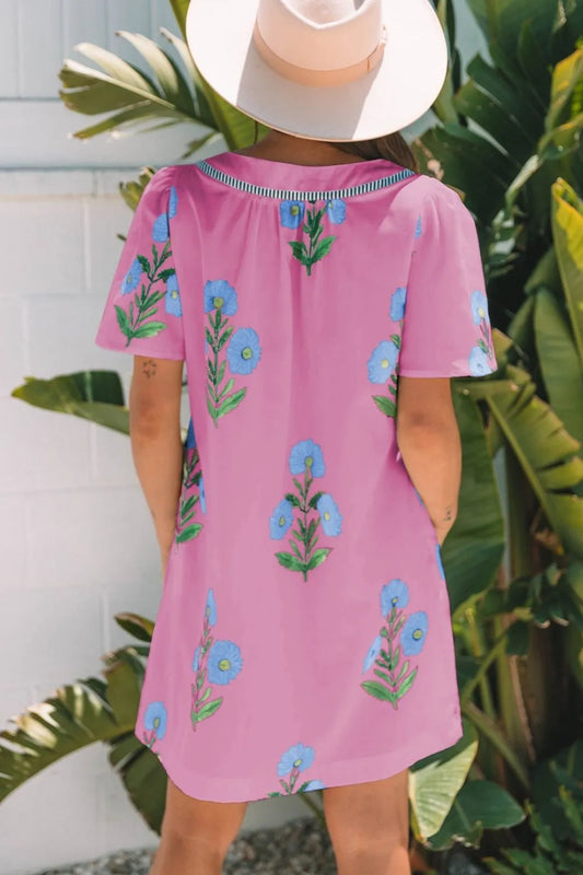 Slit Printed V-Neck Long Sleeve Midi Dress